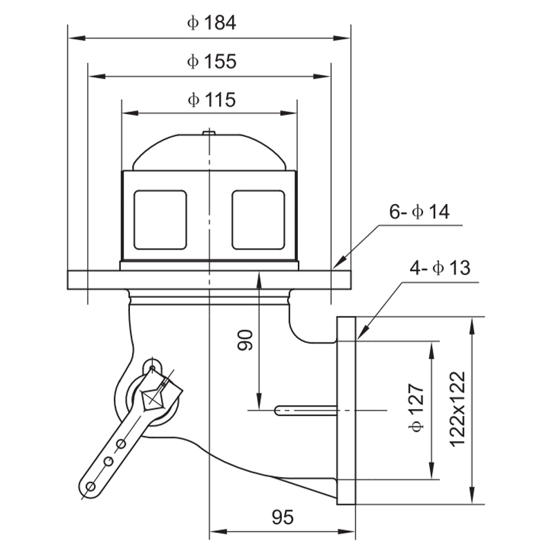 Round flange on tank side and square flange on pipe side for versatile installation